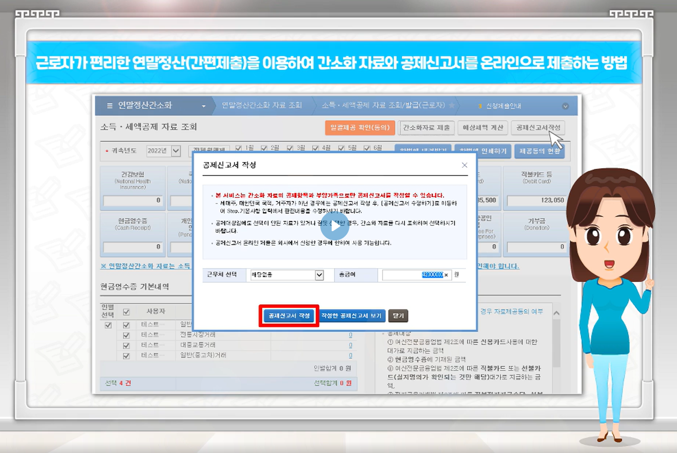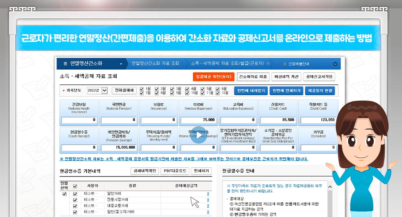 단 실제내역과 다르거나 자료제공 되지 않은 공제 증명 서류가 있다면 해당 영수증을 확인하시고 발급기관에서 다시 발급받아서 제출하실 필요가 있습니다.