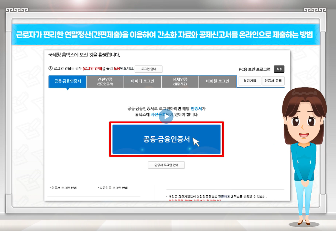 연말정산간소화 아이콘을 클릭하여 연말정산간소화 화면으로 이동합니다.
