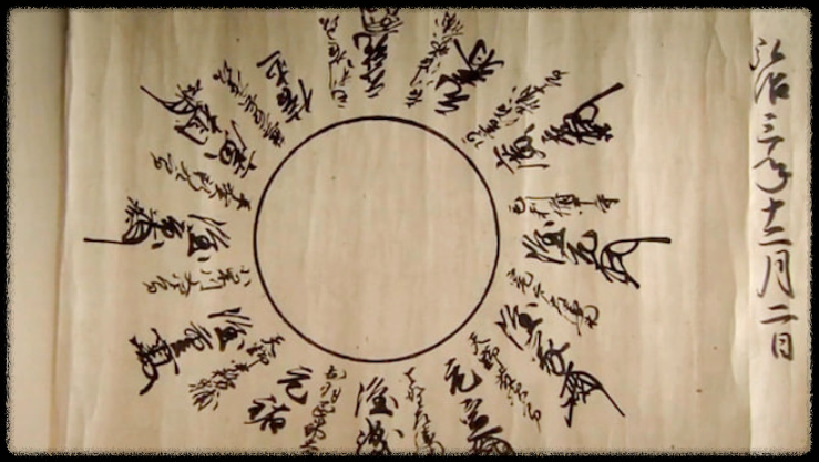 일본 전국시대에 농민들이 연판장을 통해 지배 세력에 항거했습니다. 권력자는 농민들의 요구를 받아들이더라도 주동자를 반드시 처형했기 때문에, 농민들은 주동자가 누군지 알 수 없게 이름을 방사상으로 쓰는 ‘가라카사 연판장’을 작성했습니다.