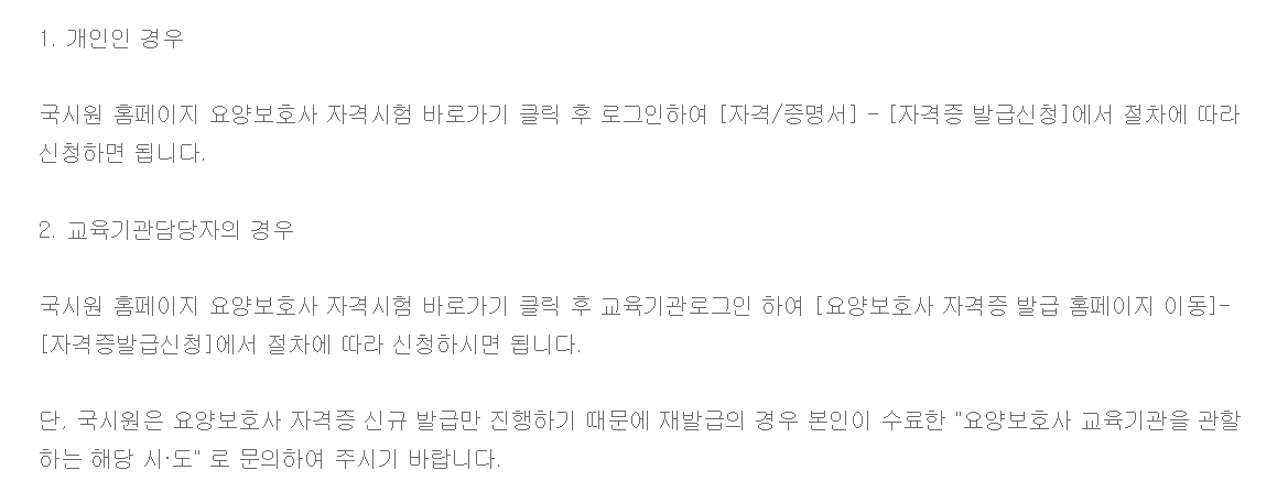 교육을 받으신 지정교육기관을 통해서 시험 합격이후에 필요한 서류를 제출하셔서 발급받으실 수 있습니다. 혹은 국시원 홈페이지를 통해서 신청하시면 됩니다. 국시원 홈페이지에는 여러가지 정보들이 많이 있으니 한번 둘러보시면 좋습니다. 전화 문의 1544-4244