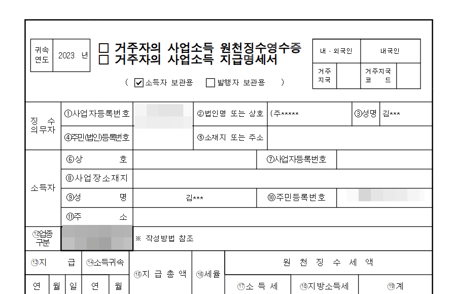 또한 금융거래나 취업, 이직, 연금 신청 등에 필요할 수 있습니다. 원천징수영수증은 소득자의 권리 보호를 위한 중요한 서류이므로 분실하지 않도록 잘 보관하시기 바랍니다.