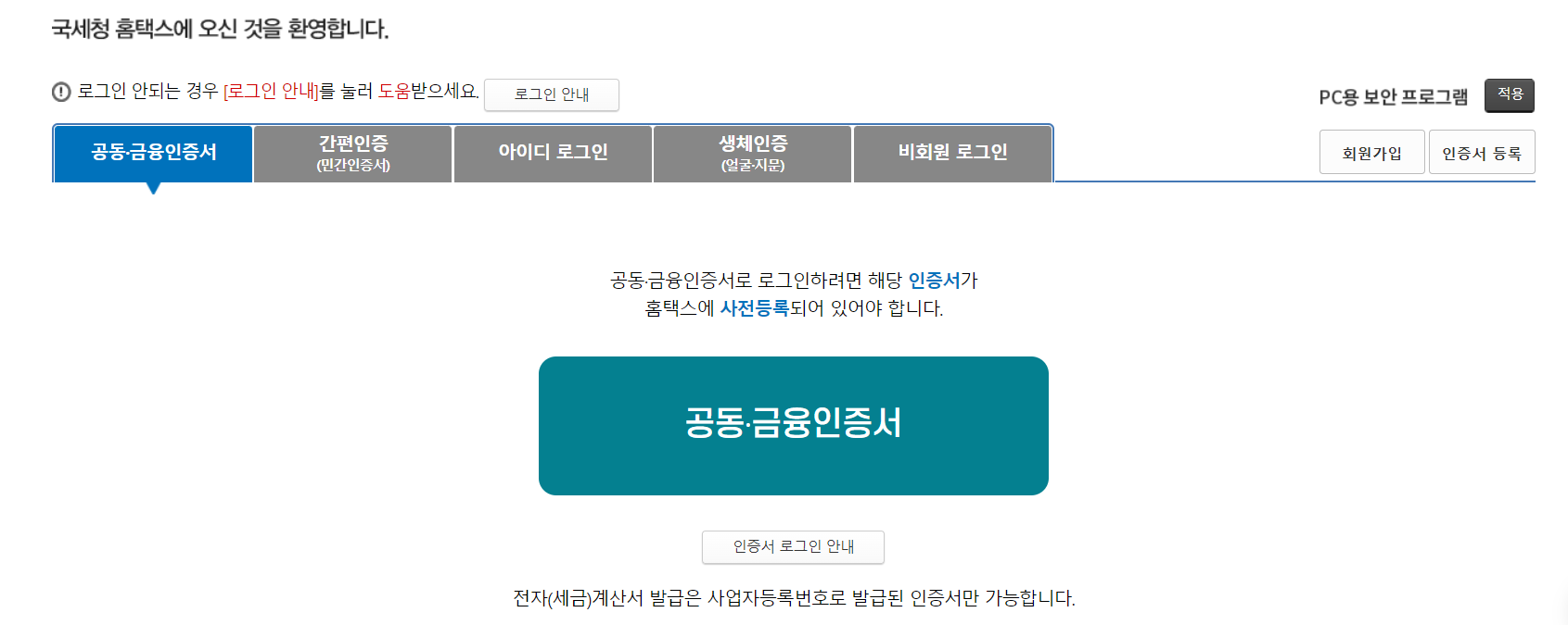 로그인은 공동 금융 인증서, 간편인증, 아이디 로그인등 평소 이용하는 방식으로 하실수 있습니다. 만약 이 과정이 준비되어 있지 않다면 먼저 준비하셔야 합니다.