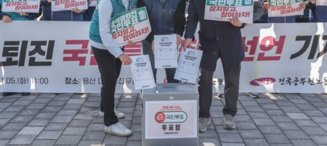 앞서 전국공무원노동조합(전공노)과 전국교직원노동조합(전교조)은 서울 용산 대통령 집무실 앞에서 '윤석열 퇴진 국민투표 참여 선언' 기자회견을 개최하였습니다.