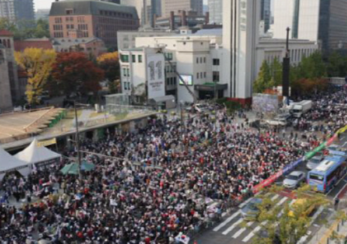 다만, 명태균 게이트 이후 집회의 규모가 점차 커졌고, 2024년 10월에는 정권의 지지율이 급락하면서 대규모 집회가 열린 바 있습니다.
