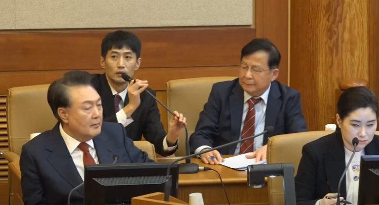 김 변호사는 "그런 규정의 법적 근거가 무엇인가"라며 강하게 반발했으며, 이때 윤 대통령은 김 변호사의 팔을 가볍게 치며 "됐다"라고 만류하는 모습을 보였습니다.