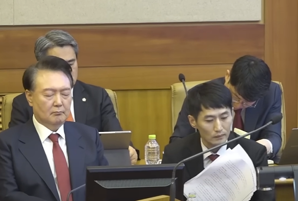 이날 김계리 변호사와 함께 이동찬 변호사가 주목받았습니다. 이동찬 변호사는 중간에 윤 대통령과 귓속말을 주고 받으며 대화를 나누는 장면도 포착되었습니다.