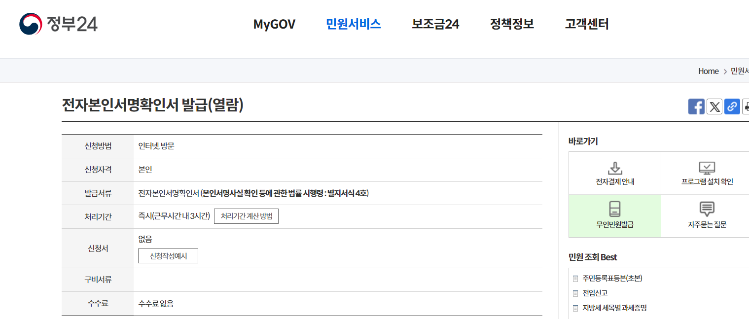 참고로 인감증명서 대신 본인서명사실 확인서라는 대체서류가 있습니다. 이 대체서류는 인터넷에서 발급받을 수 있습니다. 정부 24 홈페이지를 통하여 발급받을 수 있습니다.