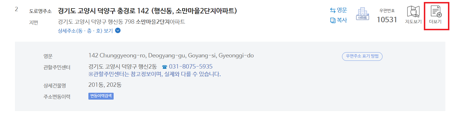 또한 대리인이 방문을 할 경우에는 신분증과 위임장등을 준비하셔서 방문해야 합니다. 아래 사이트를 통해서 가까운 주민센터를 쉽게 찾으실 수 있습니다. 주소 입력후 우측 더보기를 누르면 관할주민센터가 표시됩니다.