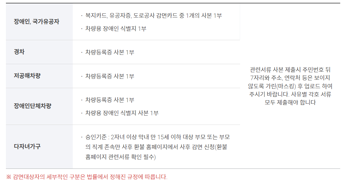 또한 다자녀 가구에 대한 지원이 눈여겨 볼만합니다. 2자녀 이상 막내 만15세 이하 가구에 혜택이 있으며 한국 국적이어야 합니다. 대신 차량 등록증, 주민등록등본이 필요하며 홈페이지에서 사전등록을 완료해야 합니다.