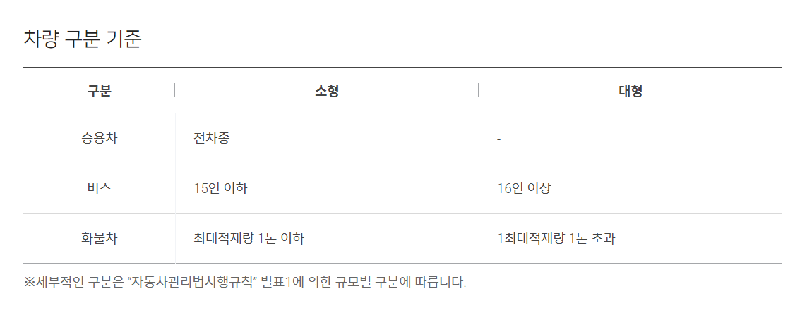 단 2.8m 이상의 대형차량은 이용이 불가합니다.
