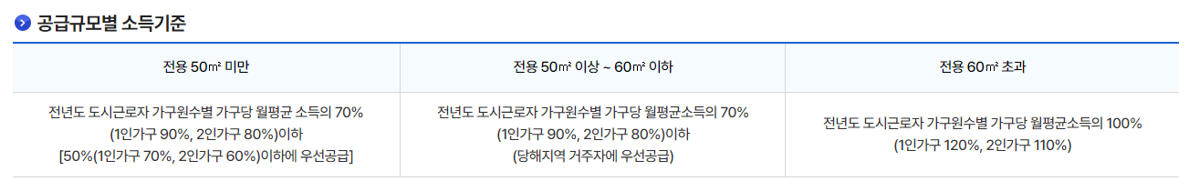 또한 공급규모별 소득기준은 하기와 같습니다.