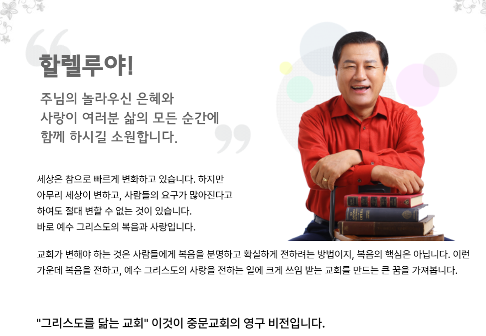 이미 각종 방송을 통하여 시청자들 또는 개신교 신자들에게 잘 알려진 장경동 목사는 중문교회 담임목사이며 소속 교단은 기독교한국침례회입니다.