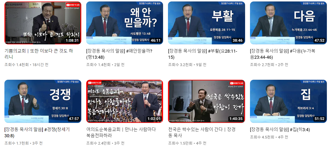 그의 공식 유튜브 채널에서 특강, 설교 관련 영상을 보실수 있습니다. 그렇지만 지나치게 가볍다는 이유로 장목사에 대해 불편함을 드러내는 시청자들도 있었습니다.