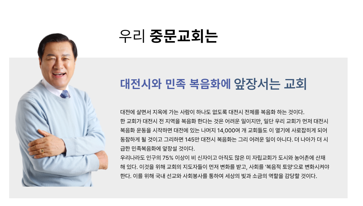 이미 각종 방송을 통하여 시청자들 또는 개신교 신자들에게 잘 알려진 장경동 목사는 중문교회 담임목사이며 소속 교단은 기독교한국침례회입니다.