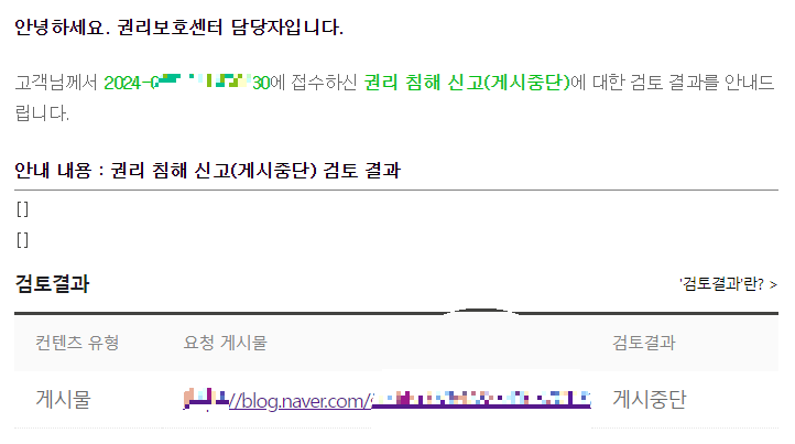1. 블로그 주인의 저작권 허위신고 피해 사례