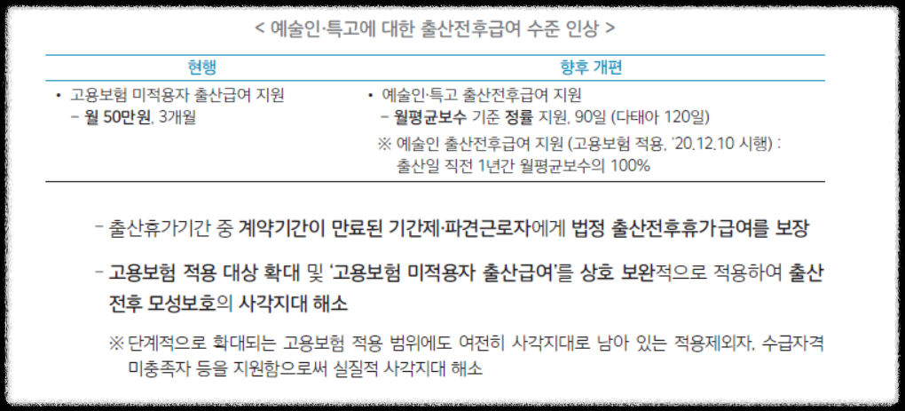 발표한 구체적인 세부사항은 전문가와 현장 의견을 듣고 최종 결정할 예정입니다. 또한 육아휴직 분할 사용 횟수도 현행 2회에서 3회로 확대하여 보다 유연한 육아휴직 이용을 가능하게 할 계획입니다.