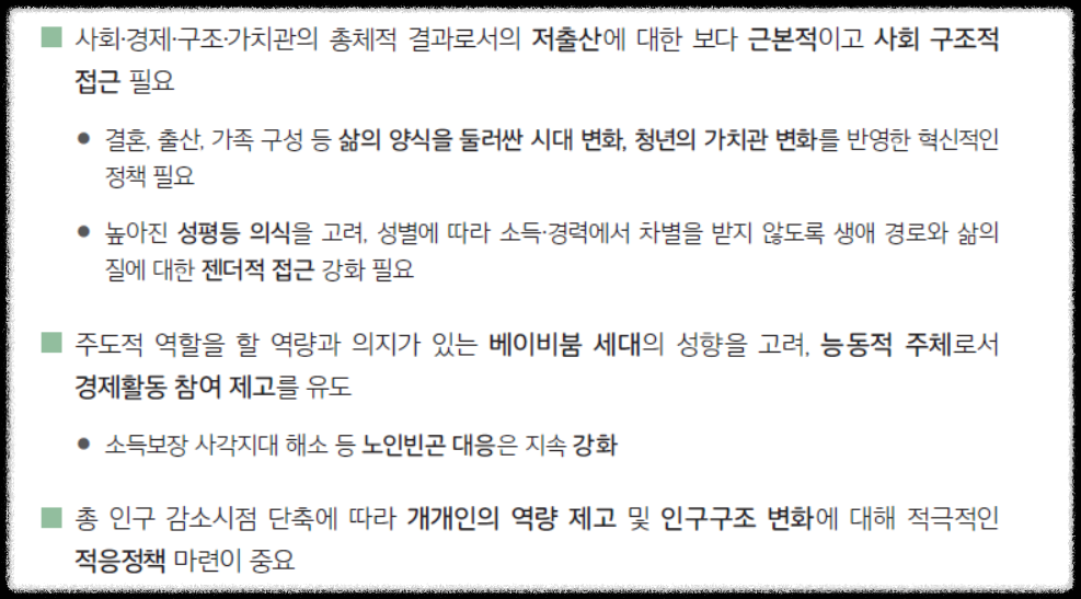 청년들에게 안정적인 미래를 보장하고, 양육의 경제적 부담을 줄이며, 여성이 경력을 유지할 수 있는 사회적 환경을 조성하는 것이 무엇보다 중요합니다.