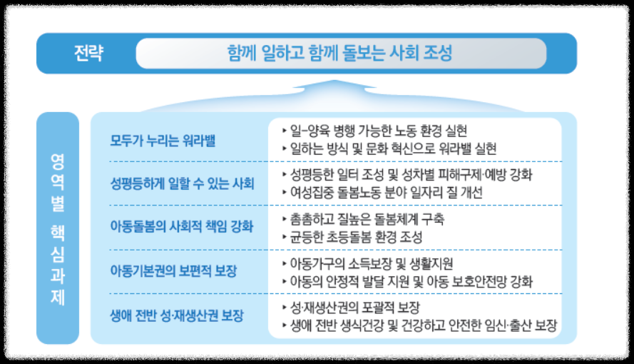 이번 대책은 일과 육아의 병행을 위한 지원 강화, 국가 책임 보육 확대, 주거 부담 완화 등 다양한 분야를 아우르는 종합적인 접근 방식을 취하고 있으며 발표내용은 다음과 같습니다.