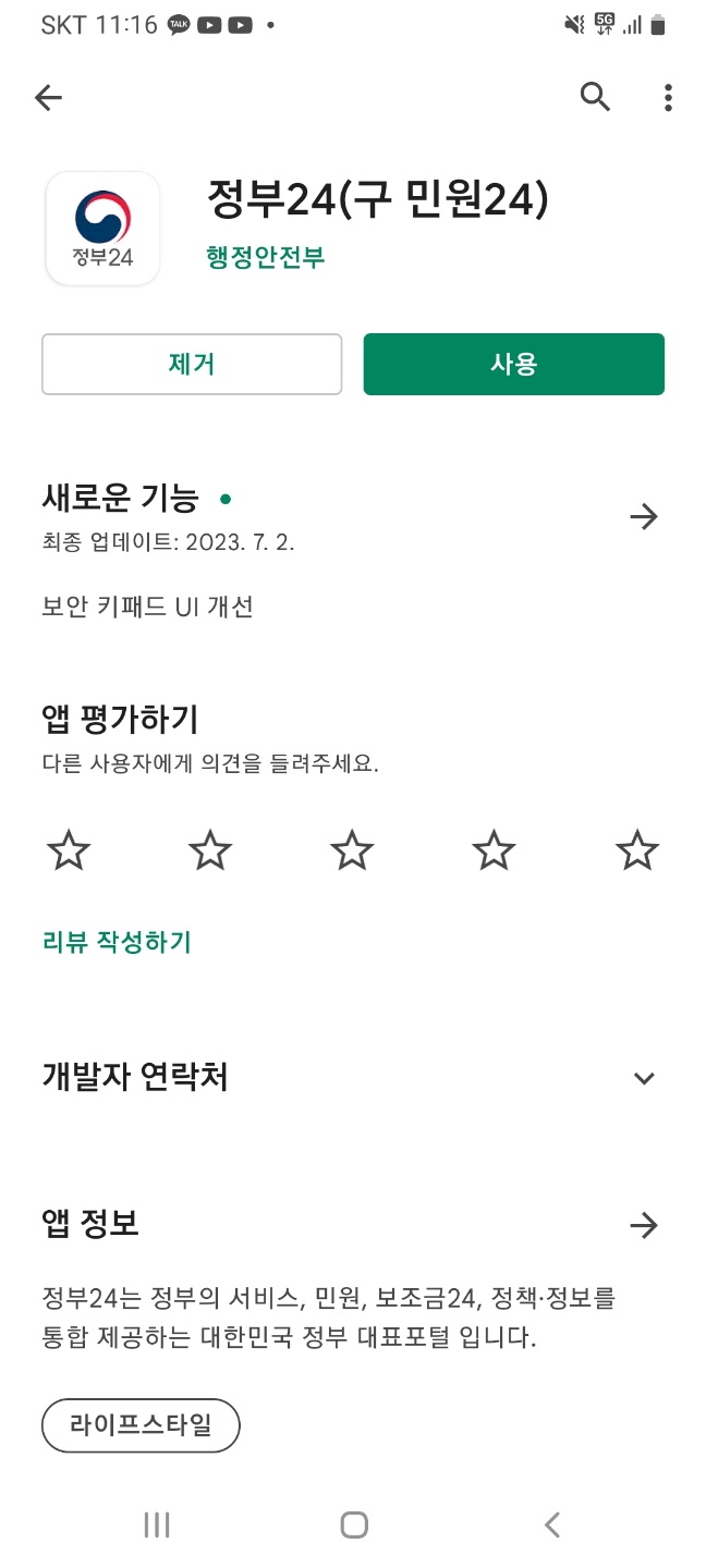 하지만 온라인으로 신청을 하시면 대리인은 신청이 불가하니 참고하시기 바랍니다. 또한 모바일로도 진행이 가능합니다. 모바일에서 하시려면 정부24앱을 먼저 다운로드받으셔야 합니다.
