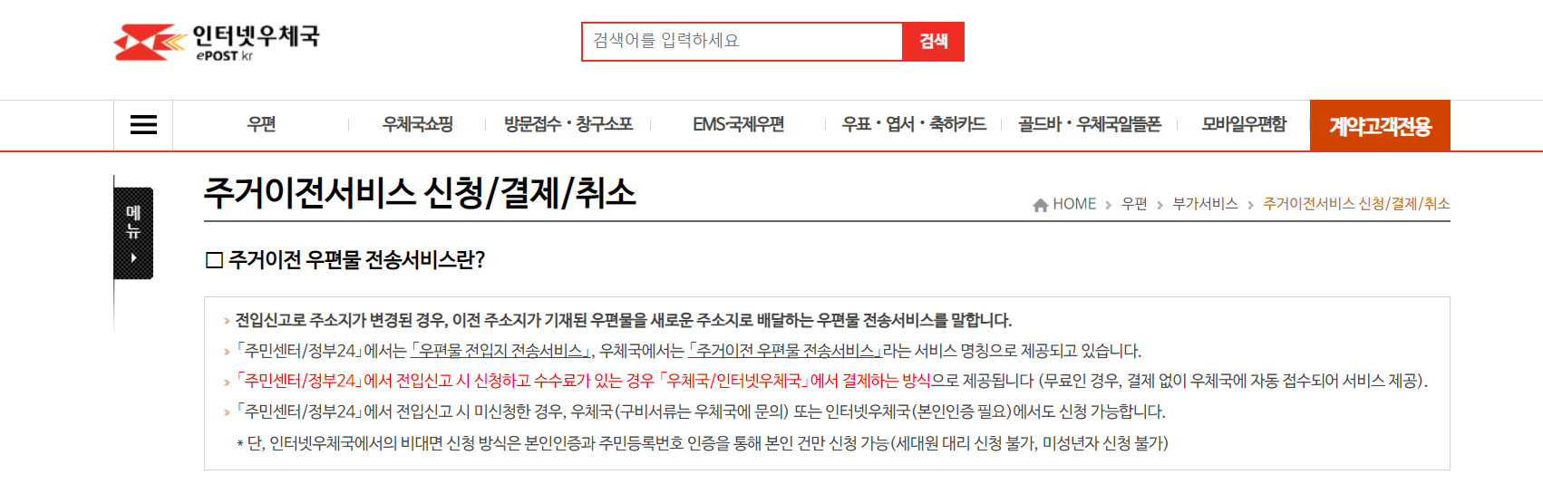 이후에 본인 인증과정을 거쳐서 진행하실 수 있습니다. 또한 우편을 하나하나 주거이전처리를 하지 않으면 계속해서 전 주소지로 가게 되는 불편함이 존재합니다.