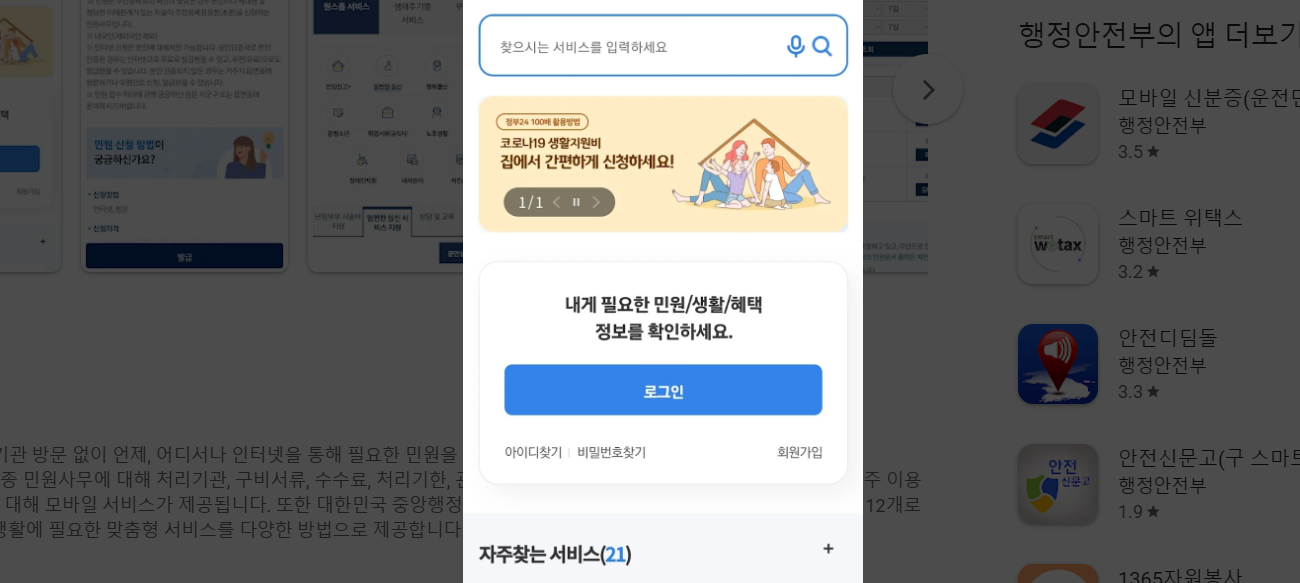 1) 정부24 앱 설치 및 실행: 아직 '정부24' 앱이 없다면, 앱 스토어에서 다운로드하여 설치해주세요.