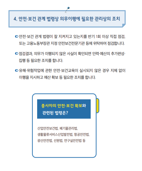 그리고 사건 발생시 고용노동부에서 실시하는 안전보건교육 20시간을 이수해야하며 미 이수시 과태료가 부과됩니다.