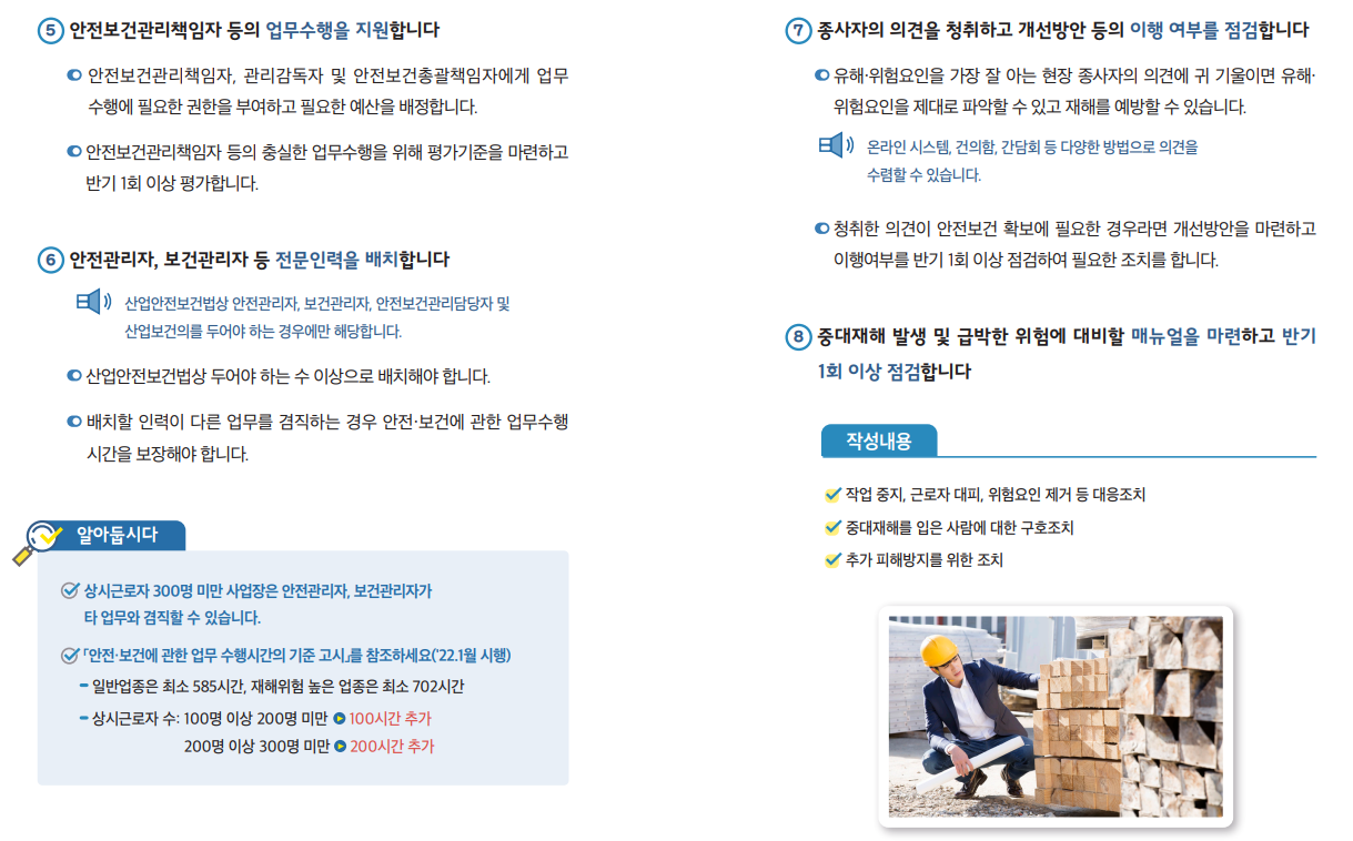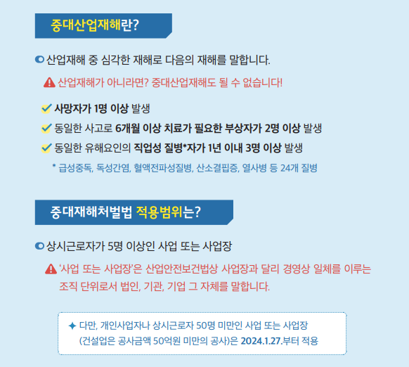 특히나 올해부터는 유예가 여야합의가 실패하면서 5인 이상 50인 미만의 사업장에도 중대재해처벌법이 예외 없이 적용됩니다.