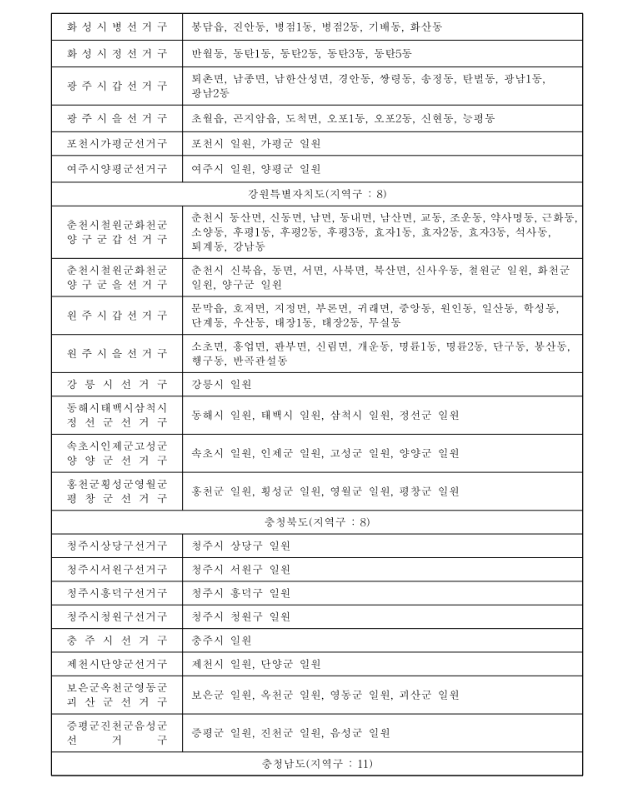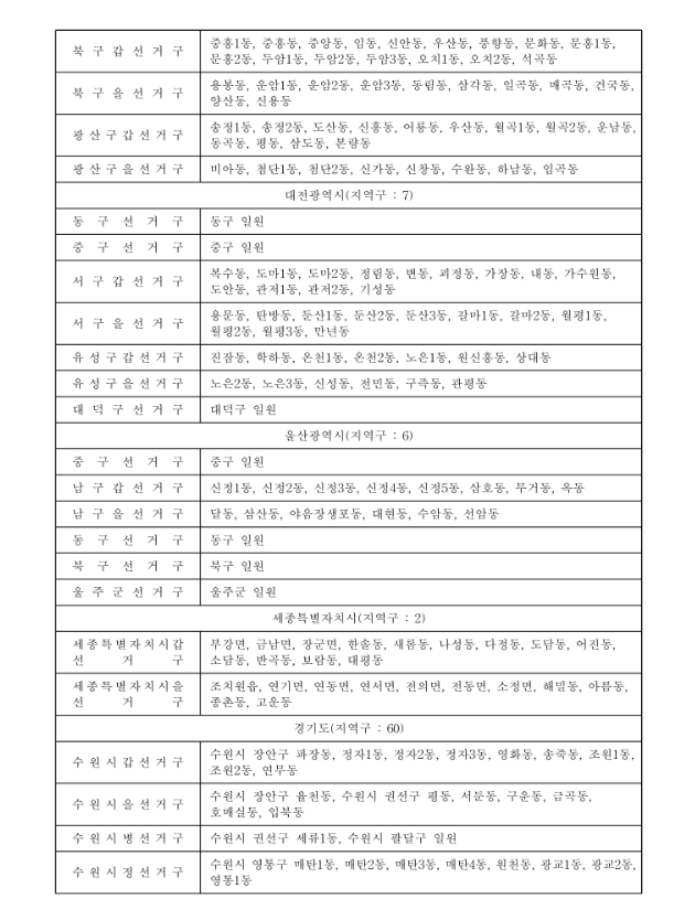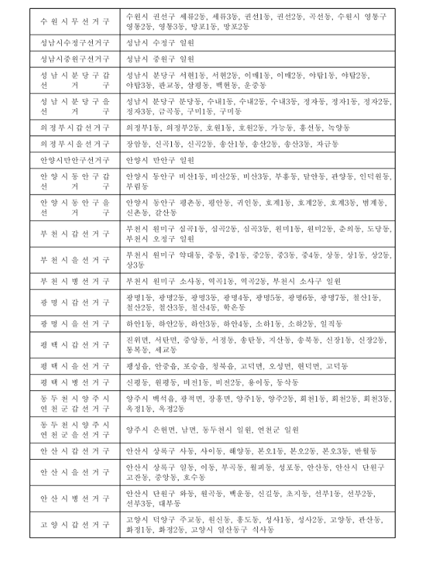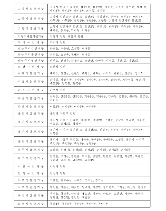 화성시는 비로소 인구에 맞는 선거구를 갖게 되었으며 인구가 늘어난 인천 서구 경기 평택 하남시등은 분구하게 되었습니다.