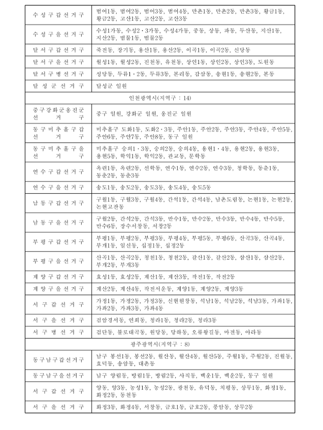 먼저 서울의 경우 22대 의석은 21대보다 1석이 줄어든 총 48석이며 경기도는 1석이 늘어난 60석이고 인천은 1석 늘어난 14석입니다.