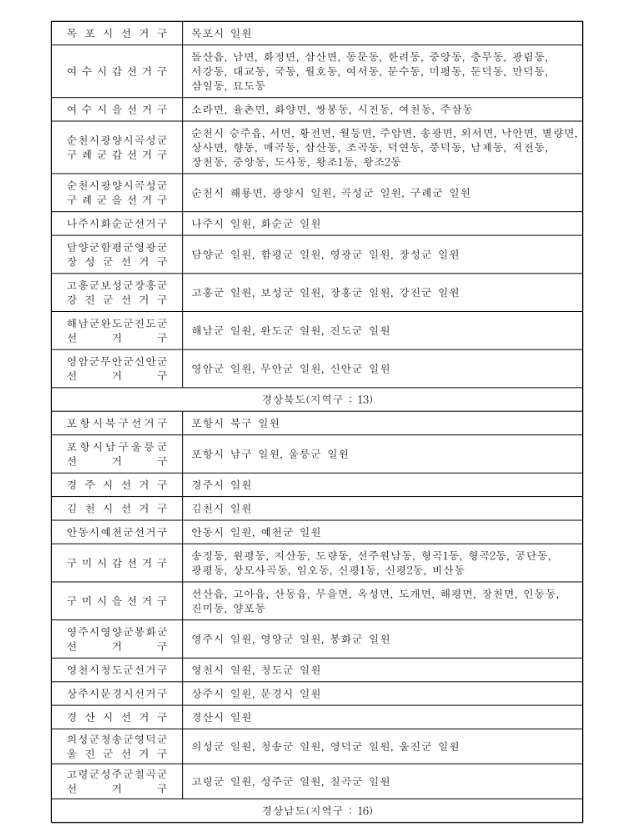 2. 지역별 국회의원 의석수 22대 국회의원 선거구