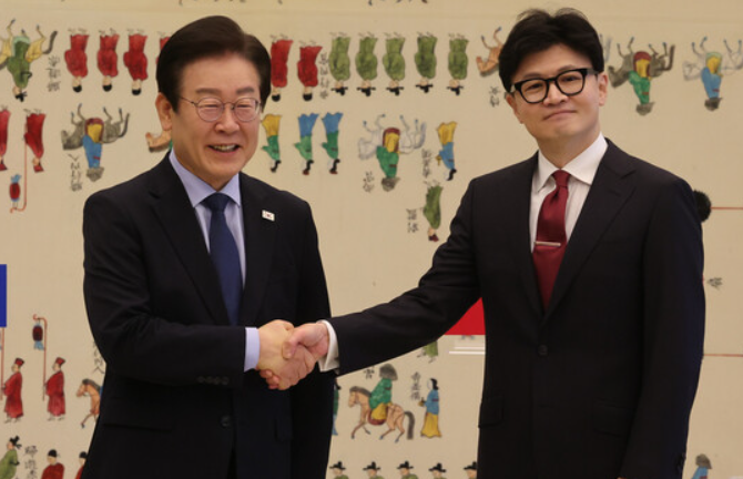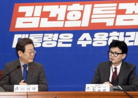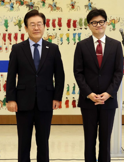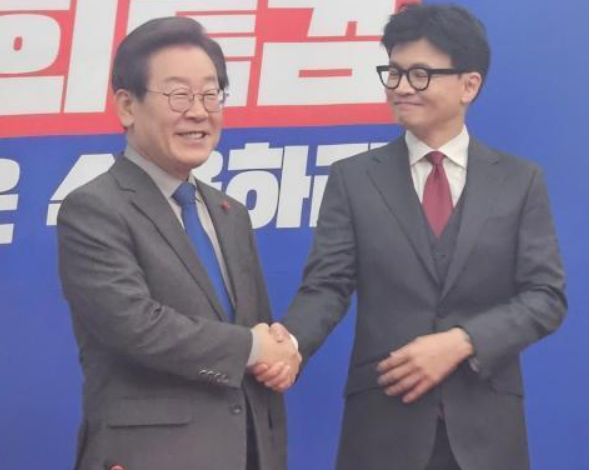 이재명 더불어민주당 대표가 한동훈 국민의힘 대표와의 대권 양자 대결에서 54%의 지지율을 기록하며 35%의 지지를 얻은 한동훈 대표에 비해 우세한 결과를 보였습니다.