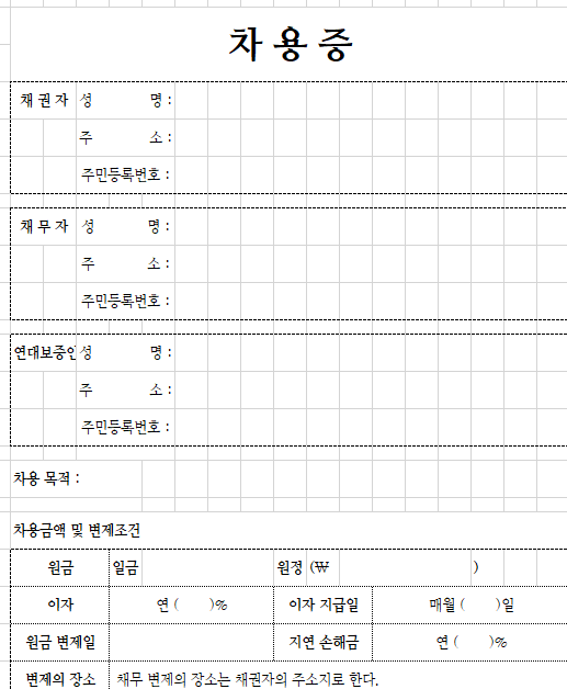 차용증 무료양식 다운로드