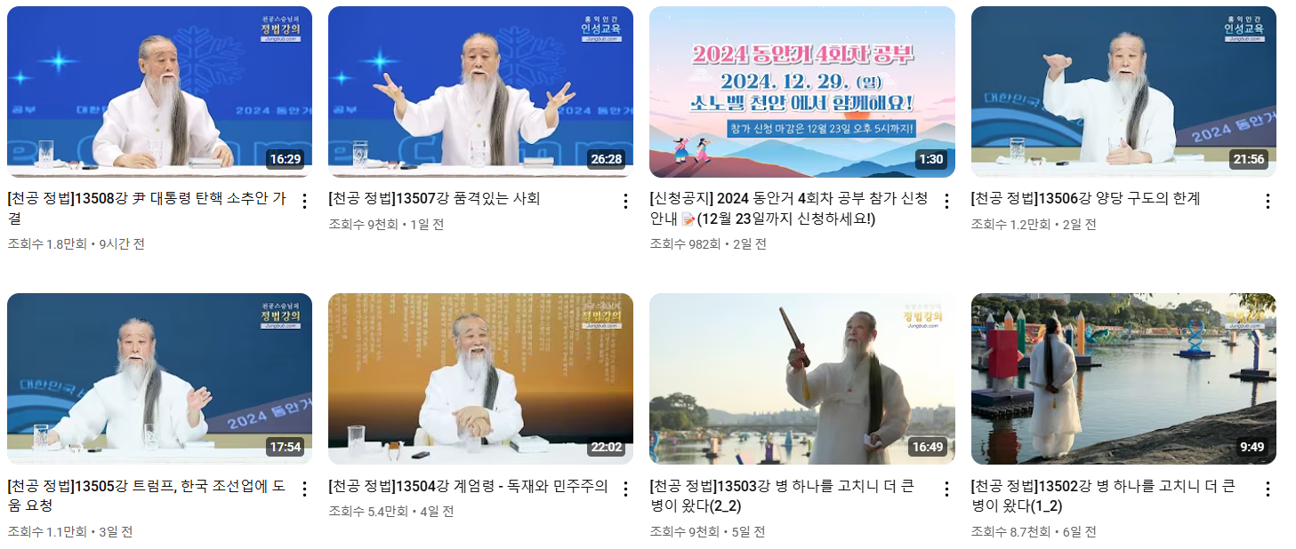 12월 14일 천공은 자신의 유튜브 채널에서 계엄령과 민주주의에 대해 언급하며, 한국 사회의 문제점을 지적했습니다.