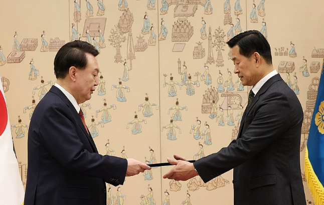 정진석 대통령 비서실장은 용산 대통령실에서 진행된 브리핑에서 "윤 대통령께서 김 장관의 사의를 수용하며, 후임으로 최병혁 주사우디아라비아 대사를 신임 국방부장관 후보자로 지명하였습니다"라고 발표하였습니다.
