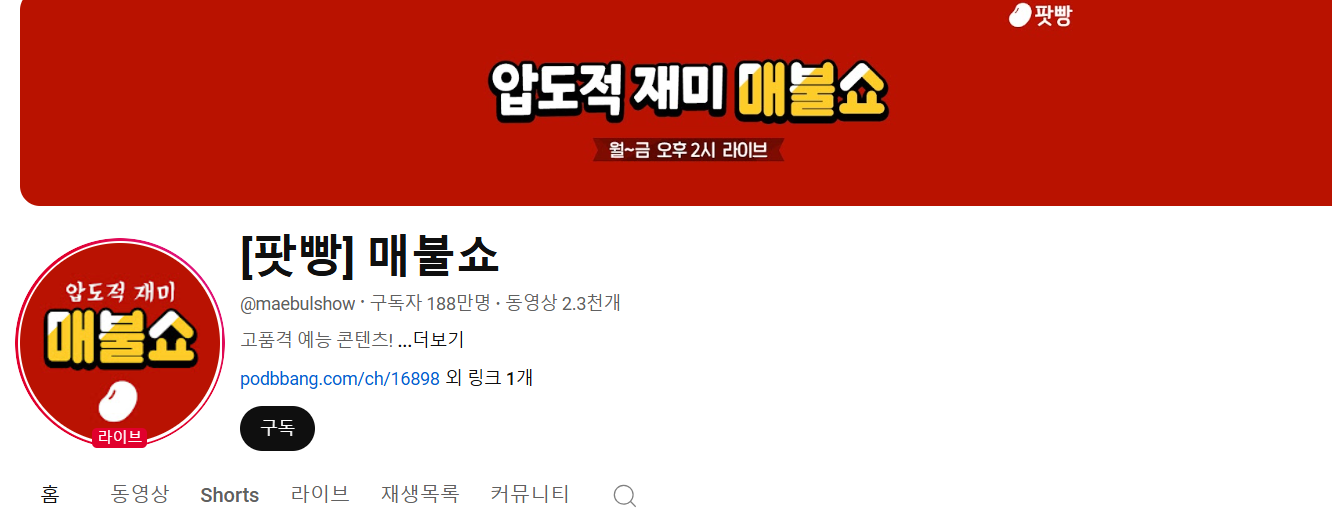 현재는 팟빵과 손잡고 매일 방송하는 '매일매일 불금쇼'라는 뜻의 '매불쇼'로 이름을 바꿔 방송 중입니다. 매불쇼는 월요일부터 금요일까지 매일 오후 2시에 유튜브에서 라이브로 방송됩니다.