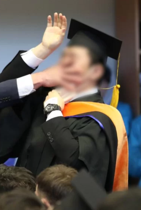 하지만 얼마뒤 내부에서 2024년 석사과정 졸업생 자격으로 참석한 인물이 항의 시위를 하다가 퇴장을 당하게 되었습니다.