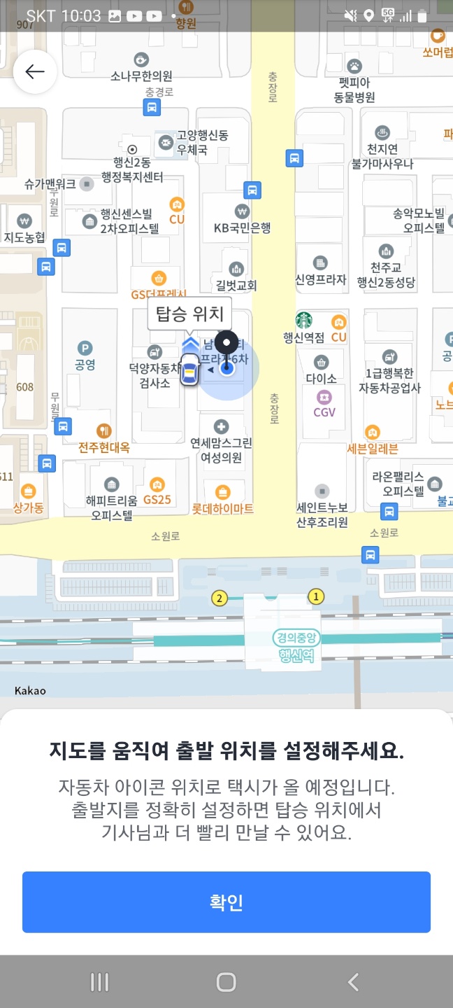 카카오 계정으로 시작하실수 있습니다. 현재 위치가 시스템에 의하여 자동으로 적용이 되는데 탑승 위치를 정확하게 설정하시기 바랍니다.
