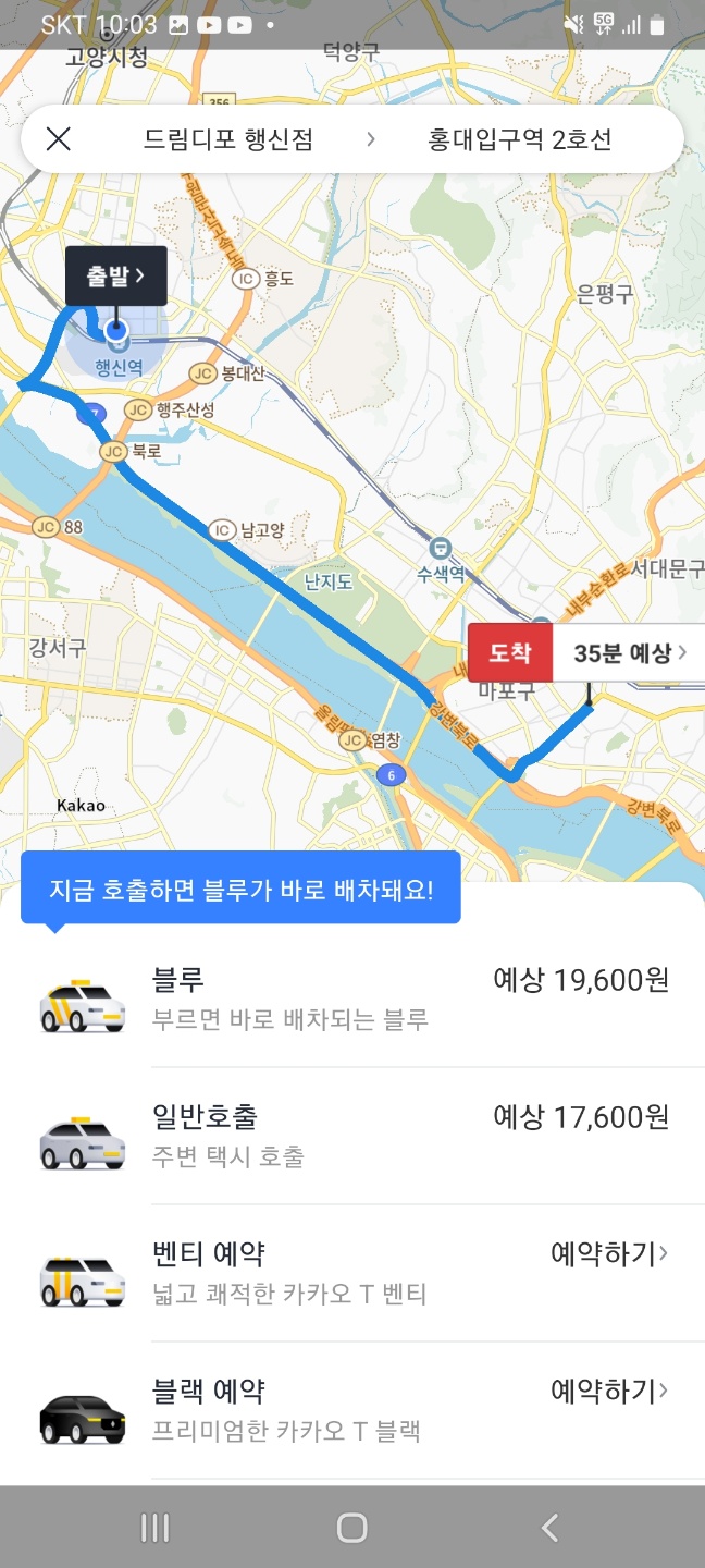도착위지도 정확하게 어디인지 설정하시면 이후 다음으로 화면이 넘어가게 됩니다. 다음 화면에서는 앞서 안내해 드린것처럼 일반, 블루, 벤티, 블랙등에서 선택이 가능하며 예상 요금을 조회해 보실수 있습니다.