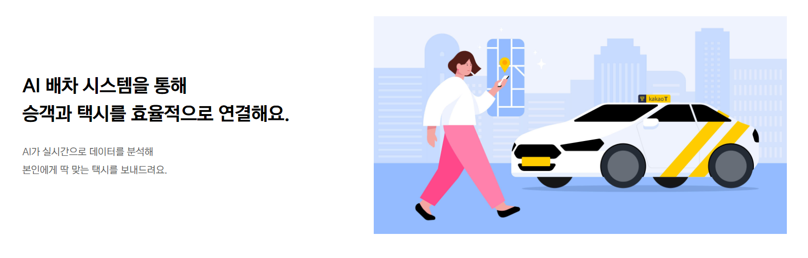 택시가 선정이 완료되면 기사가 배치되는데, 만약 근처에 택시 기사님이 없다면 먼 거리의 기사에게 배정이 되는 방식입니다. 또한 이 과정에서 평점을 여러 알고리즘이 적용되어 기사님이 배치됩니다.
