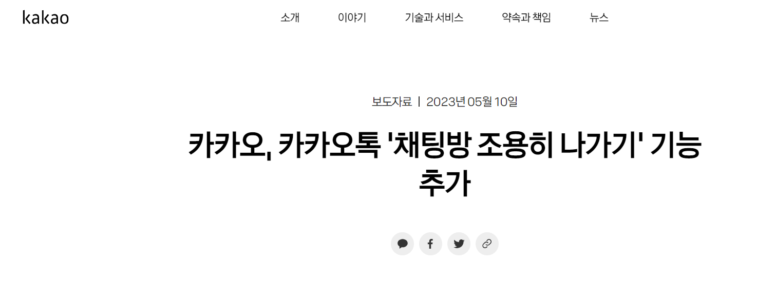 이러한 여러가지 불편함을 인지한 카카오는 작년 이런 불편하고 퇴장하기 어려웠던 사용자들을 위해서 카톡 조용히 나가기 기능이 도입되었습니다.