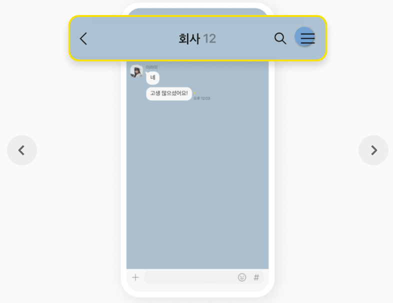 모든 과정을 마쳤다면 3명이상이 있는 단톡방에 들어갑니다. 우측 최상단에 작대기 3개의 메뉴바를 클릭하시면 창이 하나뜨는데 이후 아래에 뜨는 버튼을 클릭합니다.