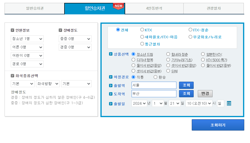 이를 바탕으로 조건에 해당이 된다면 할인승차권으로 이용하시면 됩니다. 나머지는 해당 사항이 없는 경우에는 일반 승차권으로 이용하시면 됩니다.