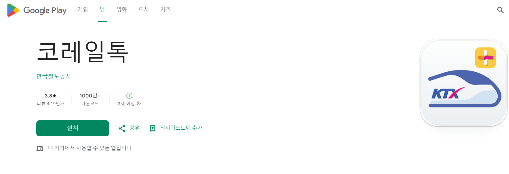 먼저 코레일톡을 어플에서 다운로드 받으셔야 합니다. 어플로 이용시에는 비회원으로 진행하실수도 있으며 네이버나 카카오톡 구글 아이디등으로 진행이 가능합니다.