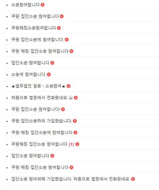 착수금 없이 진행하는 법무법인도 많아 초기 비용 부담이 적으며 네이버 카페나 카카오톡 오픈채팅방에서 모집이 활발합니다. 참여 대상은 쿠팡으로부터 유출 안내 문자를 받은 이용자나 계정 보유자입니다.