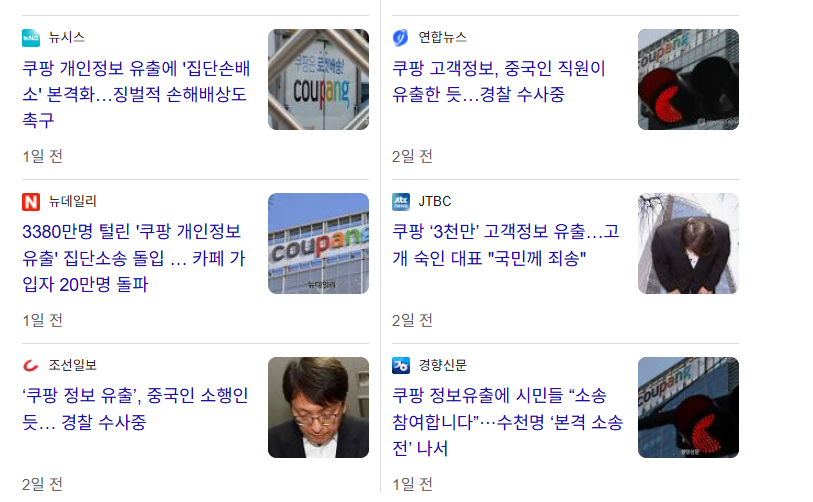 이로 인해 3370만 개 고객 계정의 이름 이메일 주소 배송지 주소 배송지 전화번호 그리고 일부 주문 내역이 유출되었습니다. 결제 정보 신용카드 번호 로그인 정보는 보호되어 안전하다고 쿠팡 측은 밝혔지만 아직 확실하게 확인된 사항은 아닙니다.
