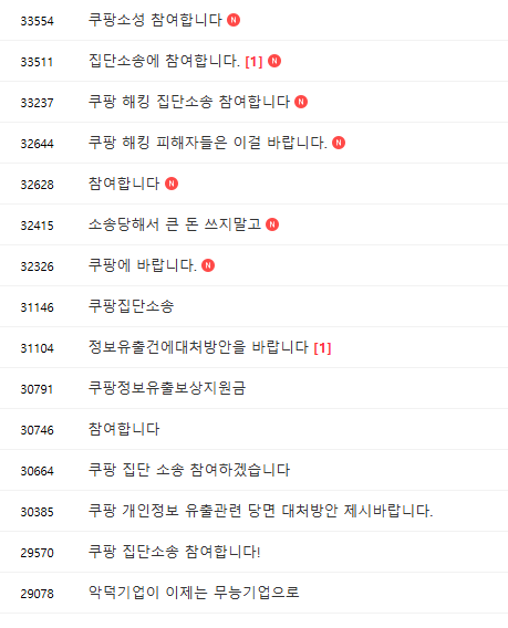 네이버 카페 10곳 이상이 개설됐으며 '쿠팡 해킹 피해자 집단소송 카페'에 7만 명이 모였고 게시물은 8천 건을 넘었습니다. 사건 공개 2~3일 만에 48만 명이 집단소송을 희망하며 카카오톡 채팅방 참여자도 1천 명을 초과했습니다.