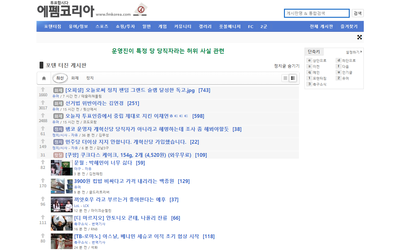 펨코는 단순한 취미 커뮤니티를 넘어, 사회적으로도 여러 차례 이슈의 중심에 선 적이 있습니다. 예를 들어, 사회적 이슈나 정치적 사건이 발생했을 때 펨코 내에서 빠르게 정보가 공유되고, 때로는 여론의 흐름을 주도하기도 합니다.