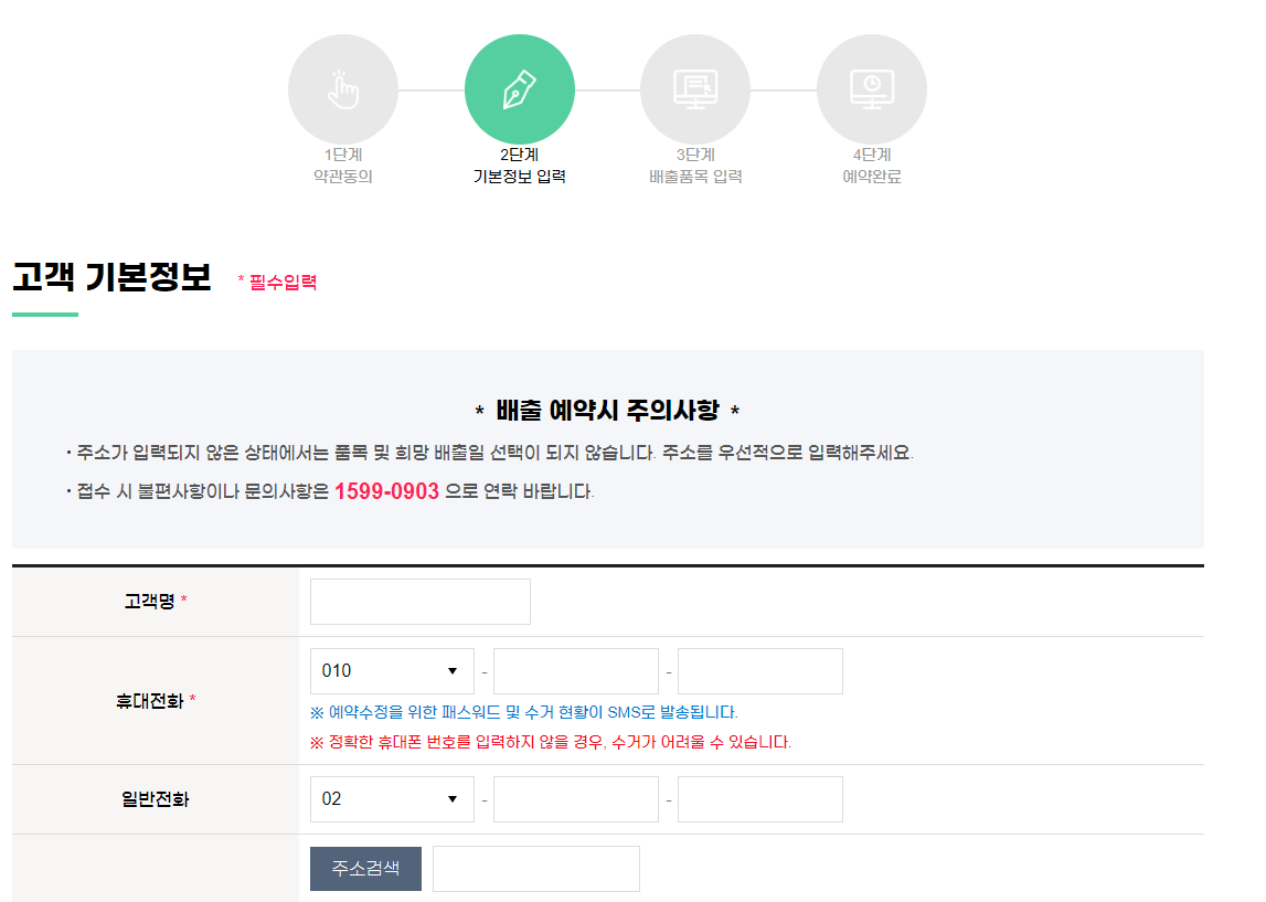 다음으로 수거할 품목이 나오게 됩니다. 품목을 선택하신 후에 예약 완료 버튼을 누르시면 됩니다. 전화로 이용을 하실 경우에는 1599-0903번으로 전화를 하시면 됩니다.