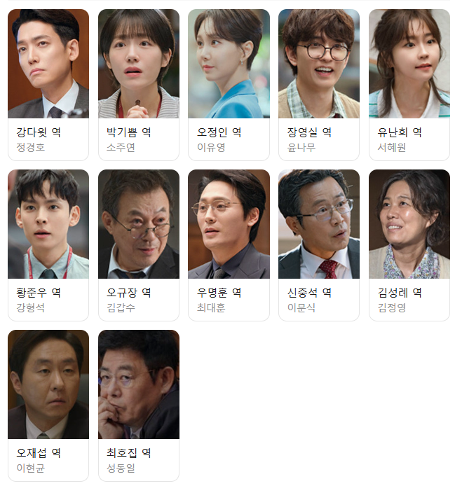 그는 이전 작품 이후 다시 tvN 드라마의 중심에 서며 연기 내공을 입증합니다. 소주연은 로펌의 핵심 인물로 등장해 강다윗을 프로보노팀으로 이끄는 역할을 맡으며 첫 미니시리즈 주연에 도전합니다. 이유영 윤나무 강형석 등 조연 배우들 또한 각자의 위치에서 극의 현실감을 단단히 받쳐줍니다.