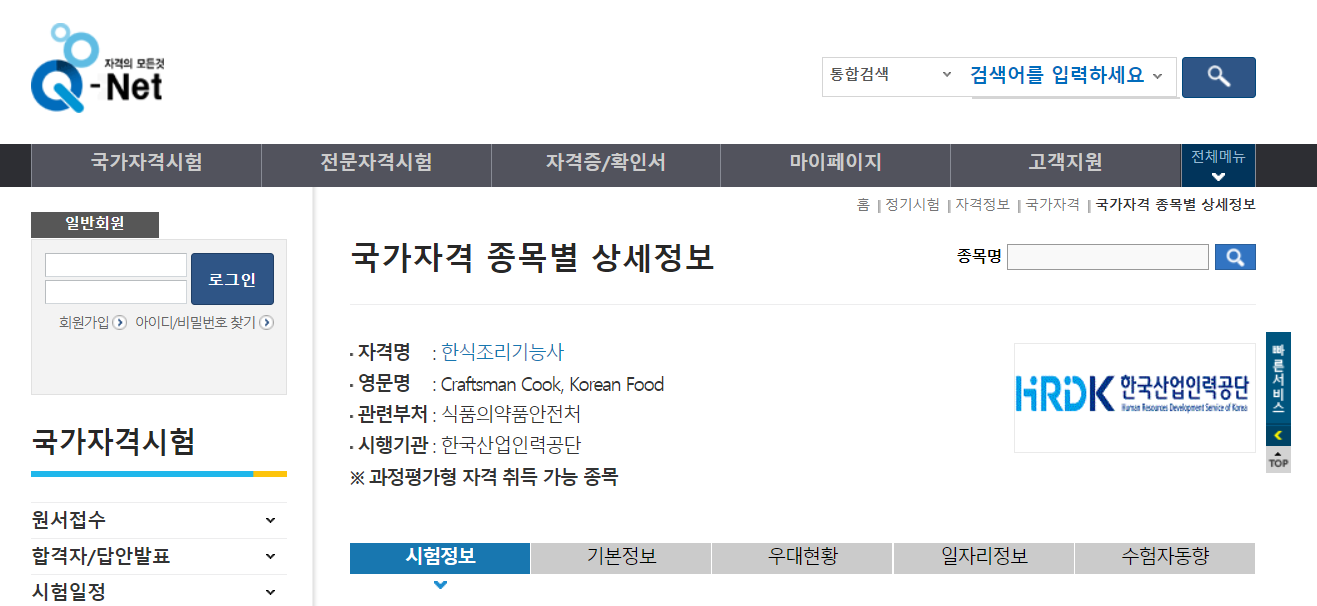 필기시험에 먼저 합격을 하시면 2년 이내에 실기시험에 합격하면 자격취득이 가능합니다. 조리사가 되려면 가장 기본적인 첫단추라고 할 수 있는 자격증은 단연 한식조리사 또는 한식 조리기능사 자격증이 될 것입니다.